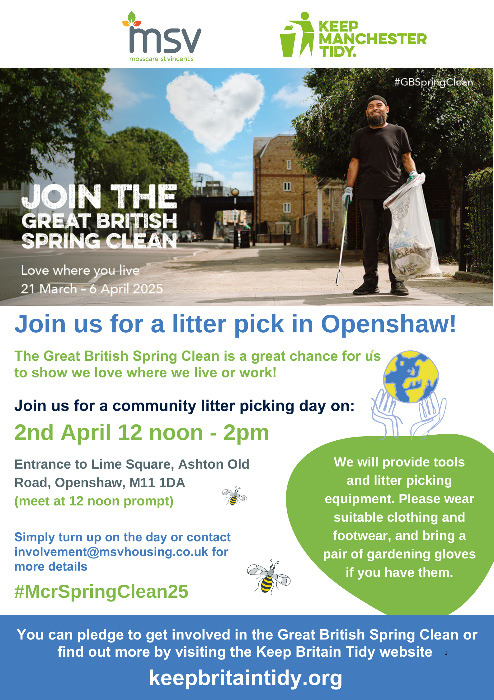 Once you get started, you can post your litter picking pictures and videos on social media using the hashtag #McrSpringClean25 and we can show the nation how much pride we take in our city.